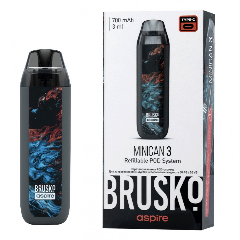 Перезаправляемая Под-Система Бруско Миникан 3 (Brusko Minican 3) 700 mah, Серый Флюид - купить в Оренбурге